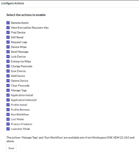 The Omnissa docs page provides a clear overview of which actions are available in each of the roles